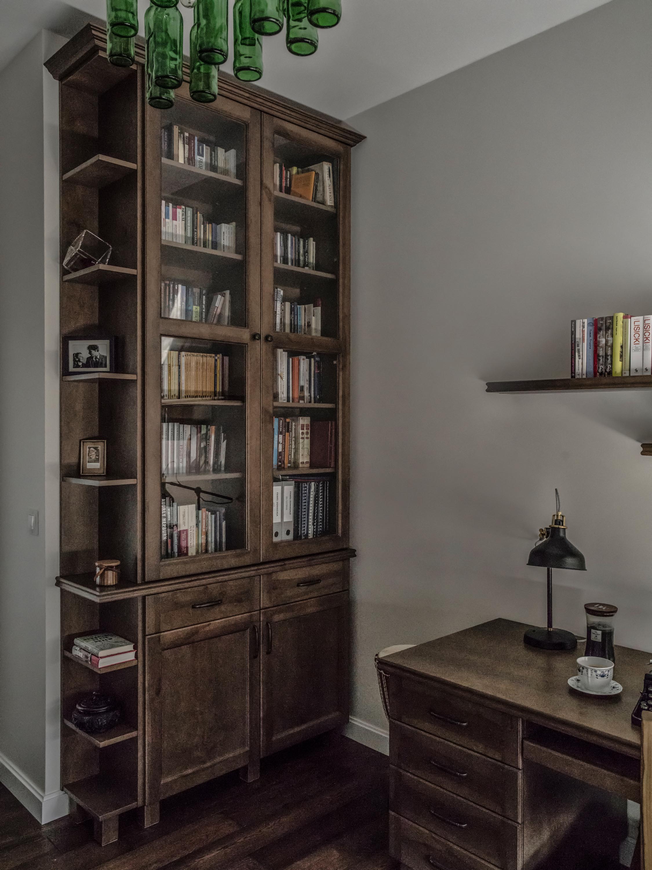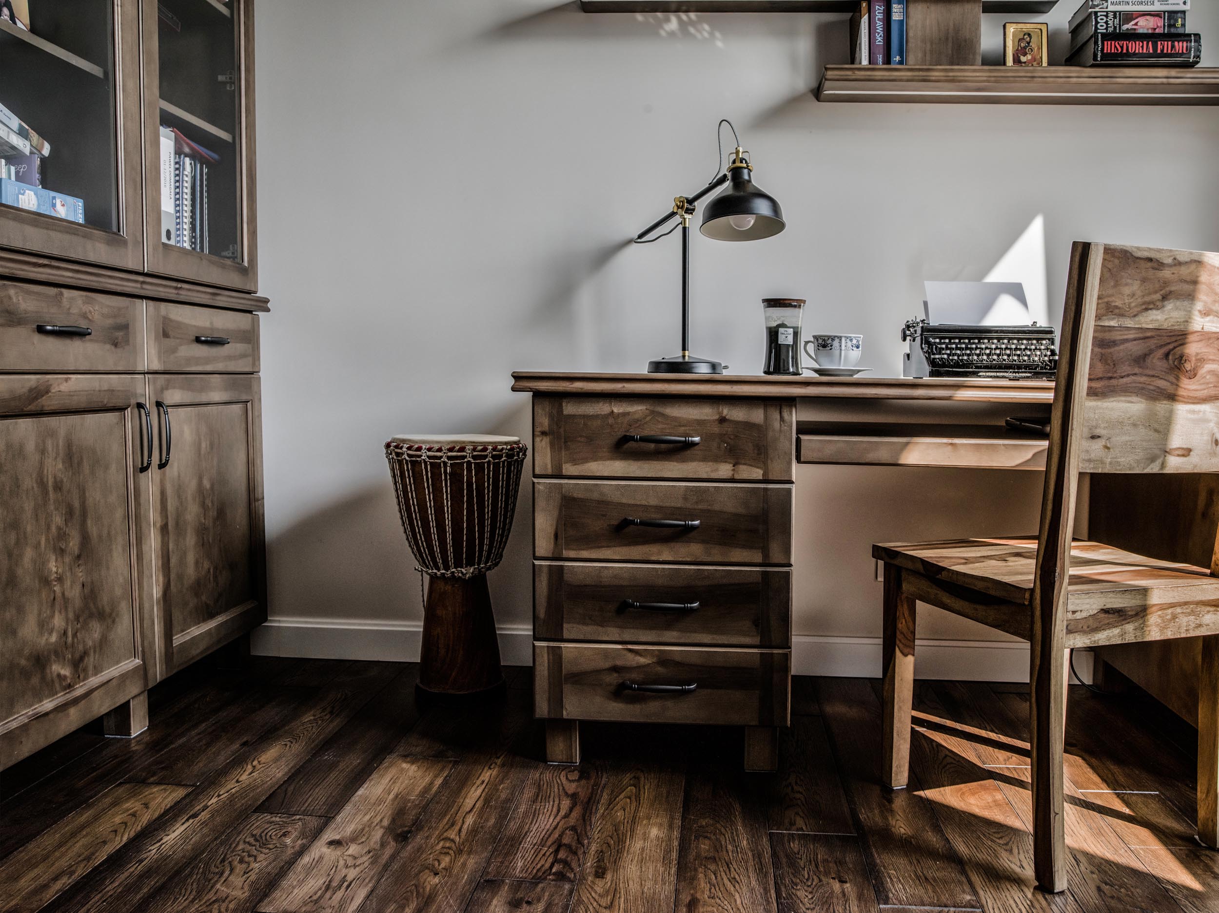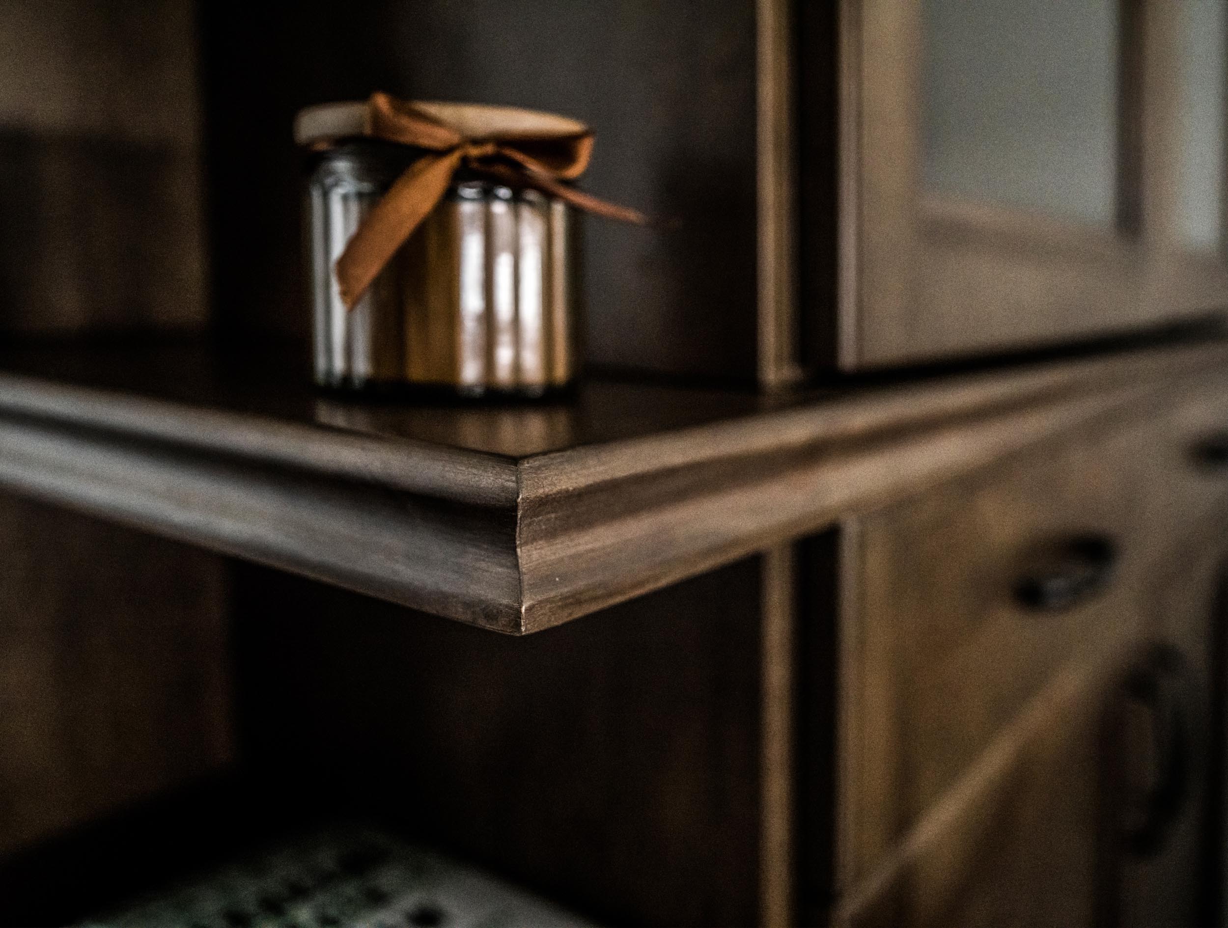 frezowany po krawędzi, płycinowy, drewniany: olcha twardzielowa, bejcowana, lakierowana