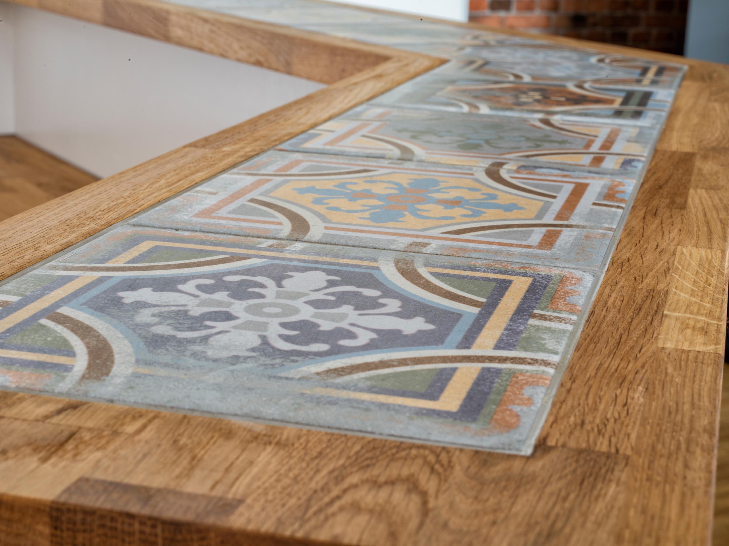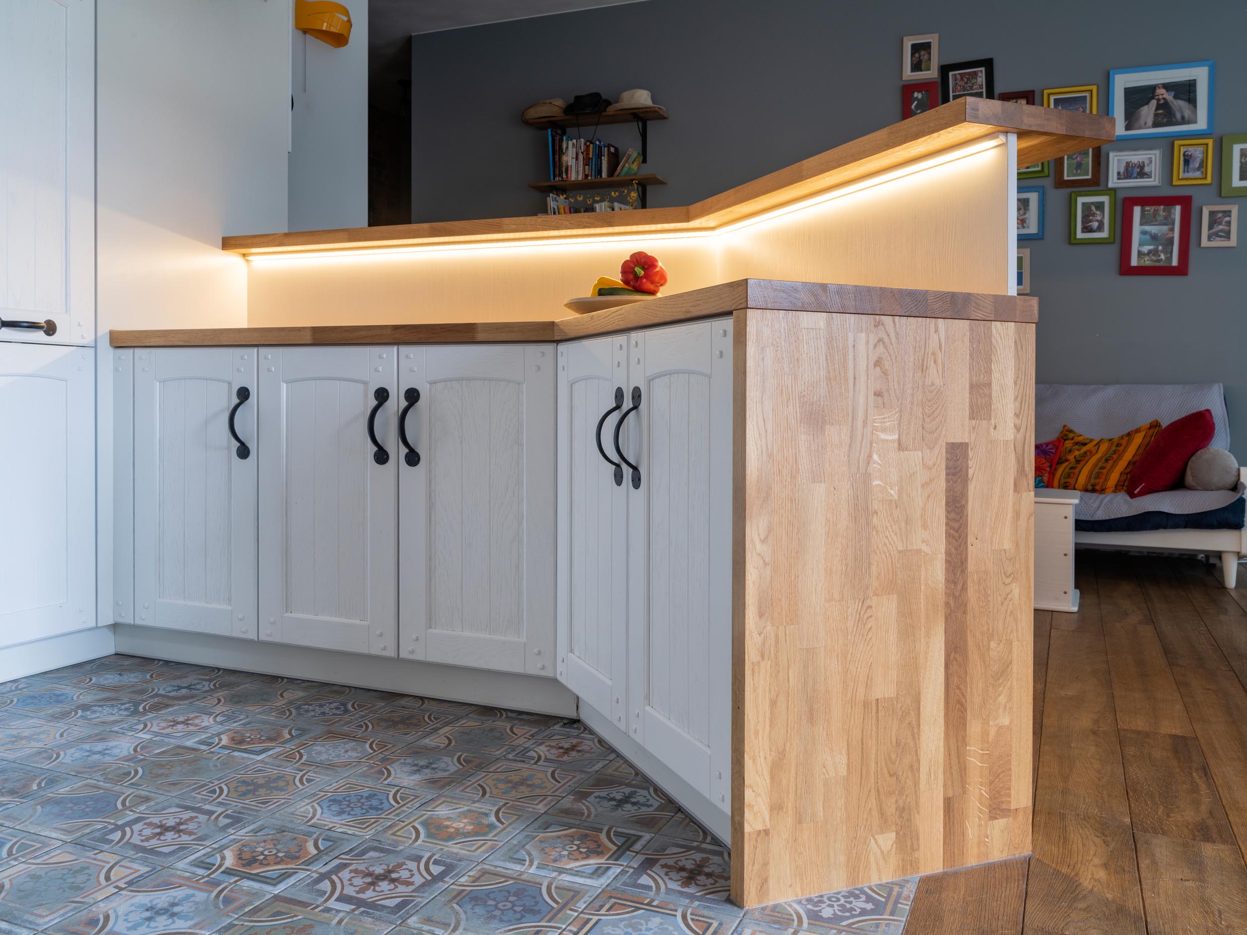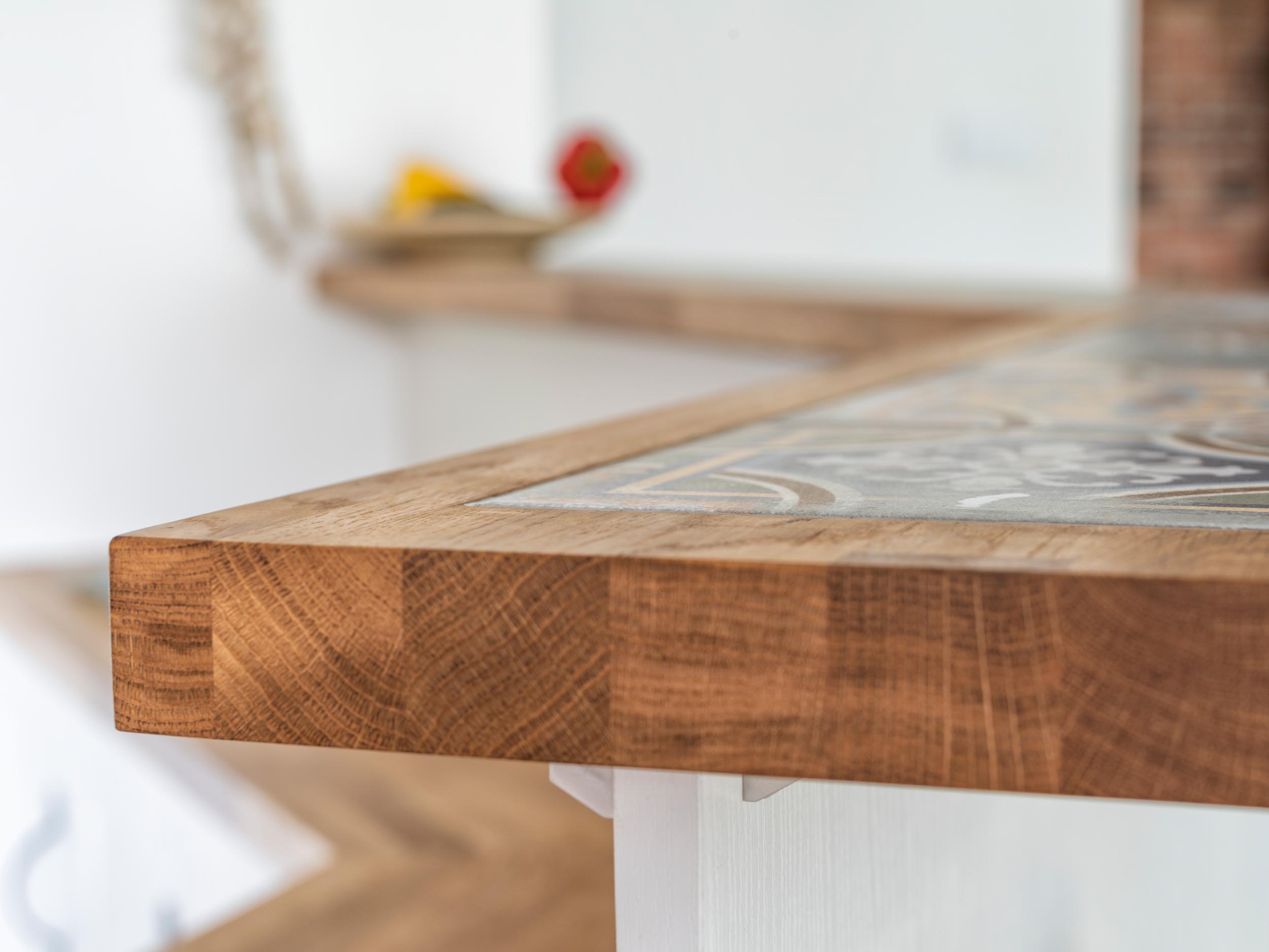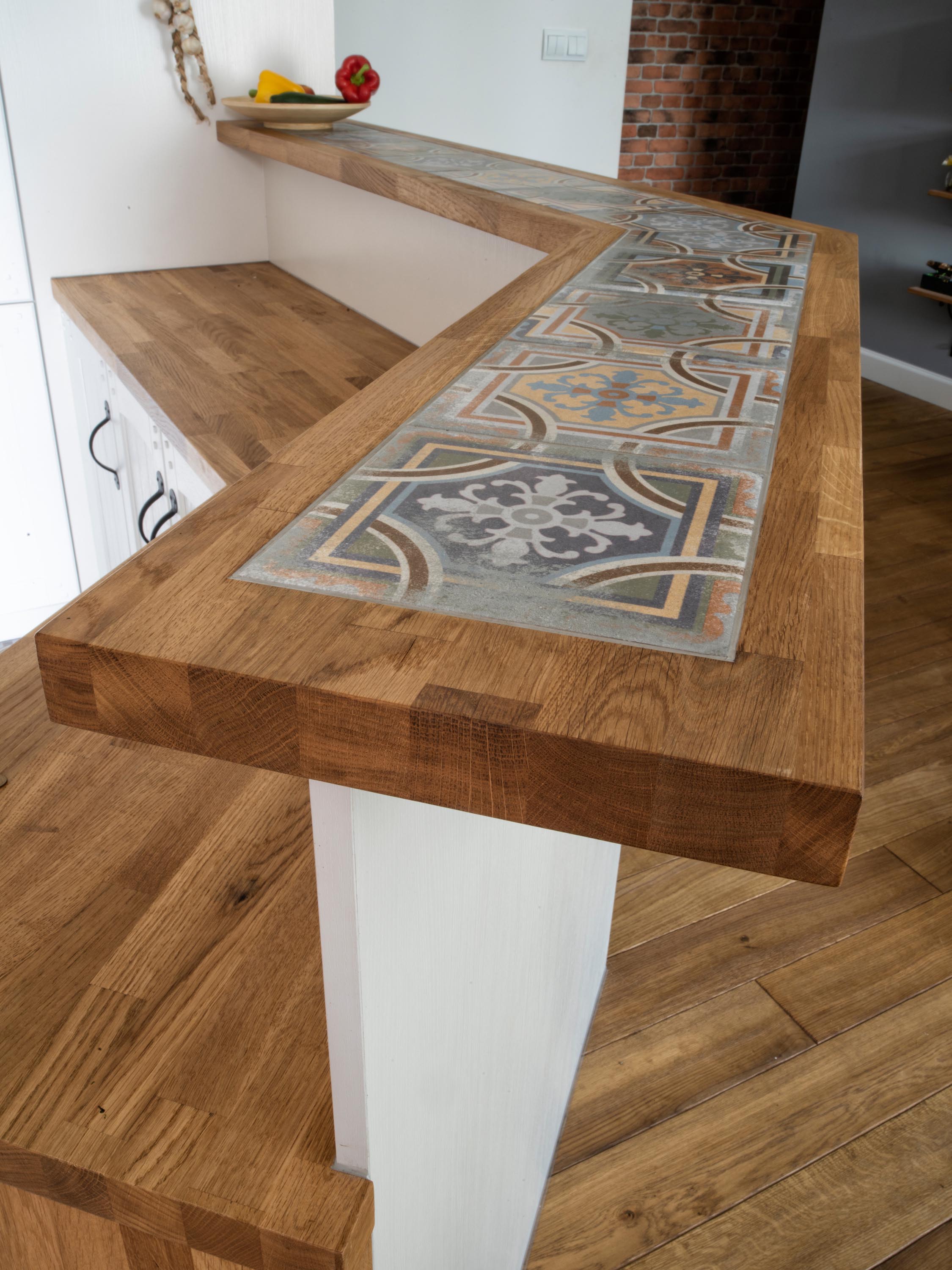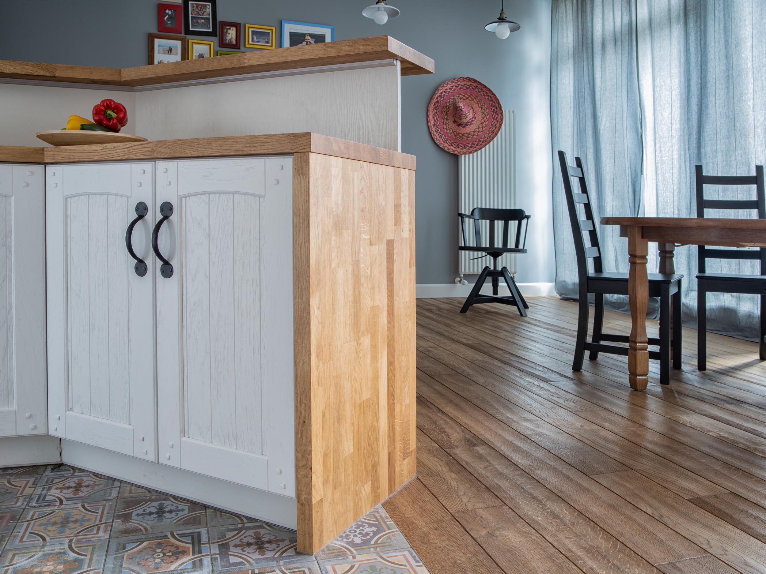 frezowany, płycinowy, drewniany: dąb, szczotkowany, kolor biały RAL 9003, satyna